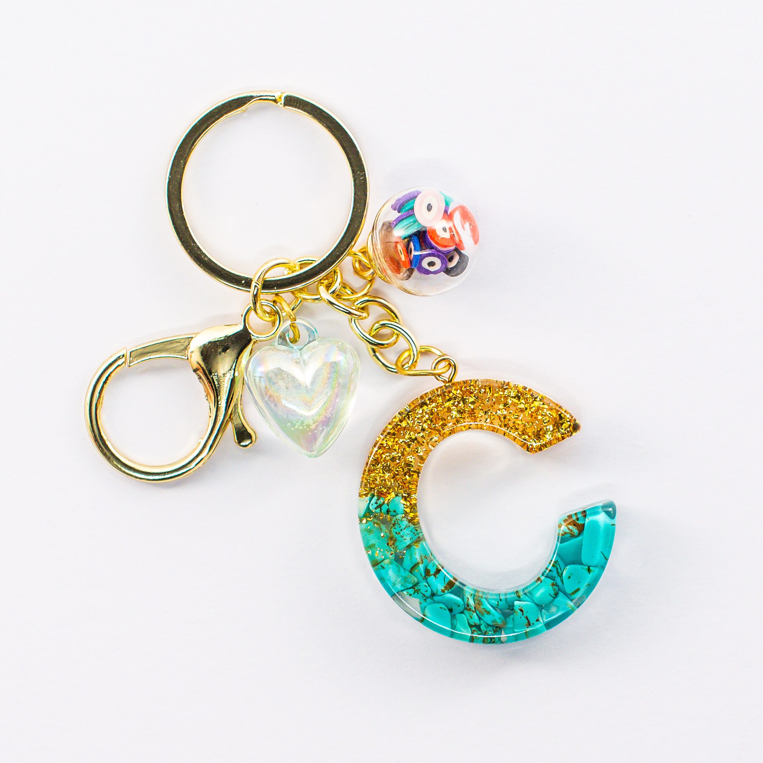 BRIGHT COLOURED AND EASY TO FIND: The bright irridescent coloured letter and heart pendant makes it eye catching and easy for you to find your keychain in your bag.